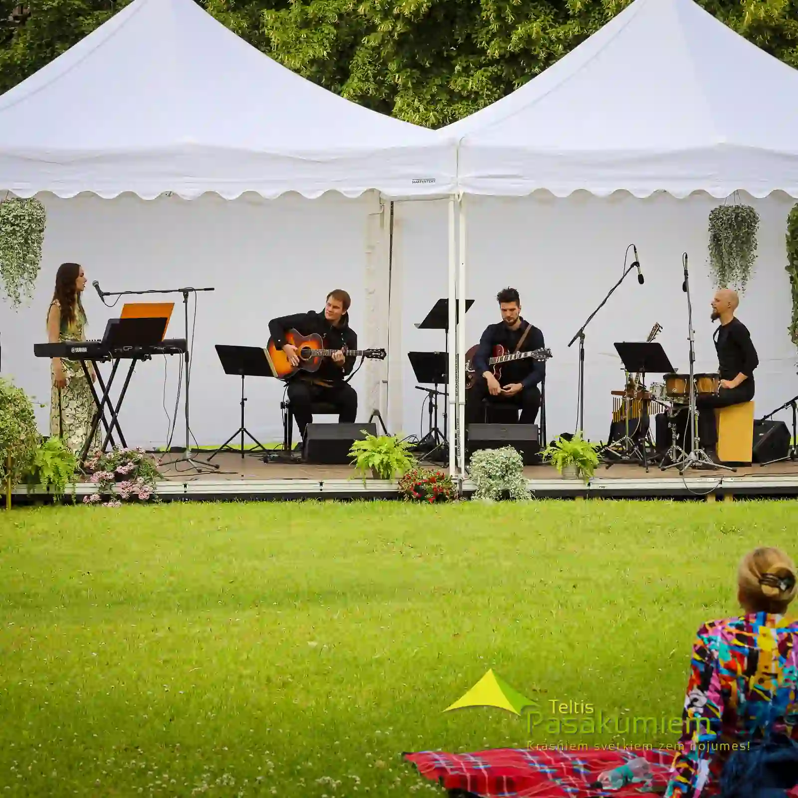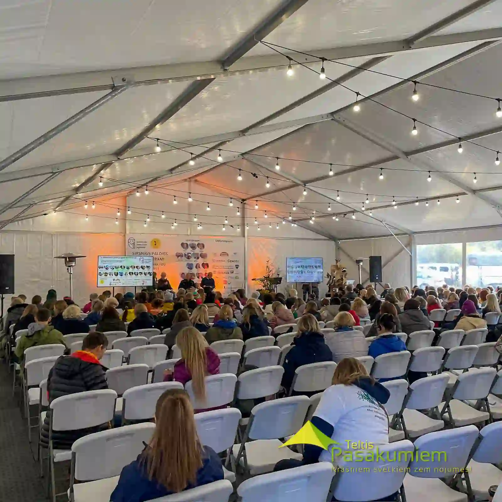Izmantojam tikai sertificētas metāla un alumīnija konstrukcijas ar blīvu PVC tenta audumu. Jūsu pasākums būs pasargāts gan no lietus, gan stipra vēja.